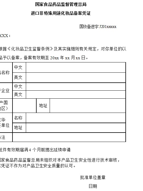 化妆品行政许可批件(备案凭证),有效期四年。