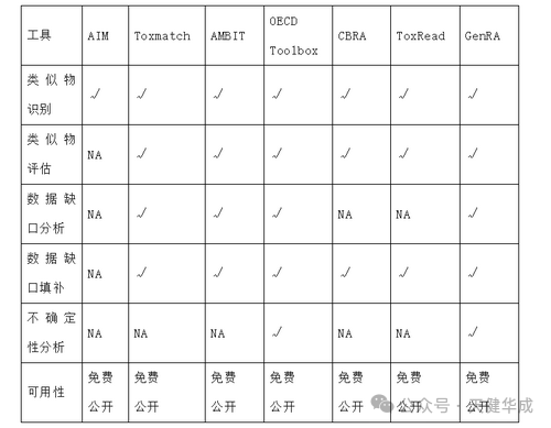 问:化妆品注册人、备案人开展相容性研究时,对于配方体系近似的化妆品是否仍需要“一品一研究”? 答:对化妆品配方体系近似、与内容物直接接触的容器或载体包装材质相同且来源一致时,化妆品注册人、备案人可根据已有的资料和实验数据对相容性开展评估工作,但需阐明理由,说明情况。 问:完整版安全评估报告中产品的稳定性评价、产品与包材相容性评价、产品防腐剂挑战试验是否接受企业自建方法? 答:化妆品注册人、备案人可以依据国家标准、技术规范、行业标准、国际标准、技术指南或自建方法开展相关研究,并在安全评估报告中提交相关测试或者评估结论。 问:有哪些工具和模型可以帮助进行交叉参照? 答:在运用交叉参照技术过程中,通常应使用一种以上的工具得出类似物,以提高交叉参照的结果可靠性。用于帮助进行交叉参照的模型有很多,可以根据不同的需要选择合适的免费公开的模型和工具。(见下表)。
